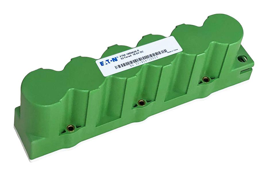 This is a XTM-18R0626-R Supercapacitor , 61.7 F, 18 V, Screw, -5%, +20%, 21.5 mm, 1500 hours @ 65°C New product from EATON BUSSMANN with the model number XTM-18R0626-R
