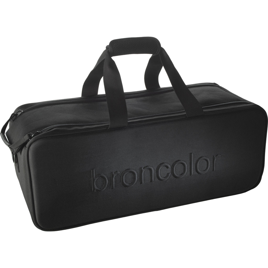 The Flash Bag 1.1 for Siros L from Broncolor is a padded soft-sided bag for storage and transport of one Siros 400 or 800 with an umbrella reflector and a transmitter. It has a double zipper closure, joining handles, and a shoulder strap.