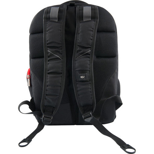 The CHS-BPK backpack easily transports a multitude of gear and laptops. Plenty of compartments keep everything organized and easily accessible and a dedicated internal compartment features an audio cable pass-through for MP3 players or cell phones. Keep hands free with the Dual D-rings to attach large items and a quick-release keychain to store keys or thumb drives. The bag's super soft padding won't scratch or dent sensitive items during transportation.