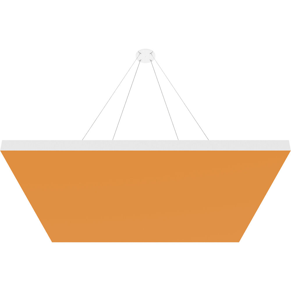 This Square, pumpkin orange Vicoustic ViCloud VMT Flat is a simple and lightweight suspended acoustic solution that is ideal for restaurants, open-plan offices, convention centers, atriums, or any public space where there is a great concentration of people and where background noise, created by a room full of conversations, can quickly build up. Being a suspended acoustic element, it presents twice the area of absorption material than a common acoustic panel, making it a very effective solution for venues with high ceilings.