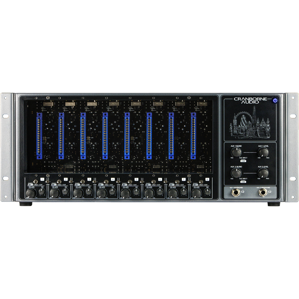 Cranborne Audio to the ADAT expansion ports on your audio interface and incorporate 500 series modules into your studio's tracking and mixing capabilities. The versatile unit functions as an 8-slot 500 series rack, 8-channel ADAT expander, analog summing mixer, and zero-latency artist mixer built into a 4 RU chassis.