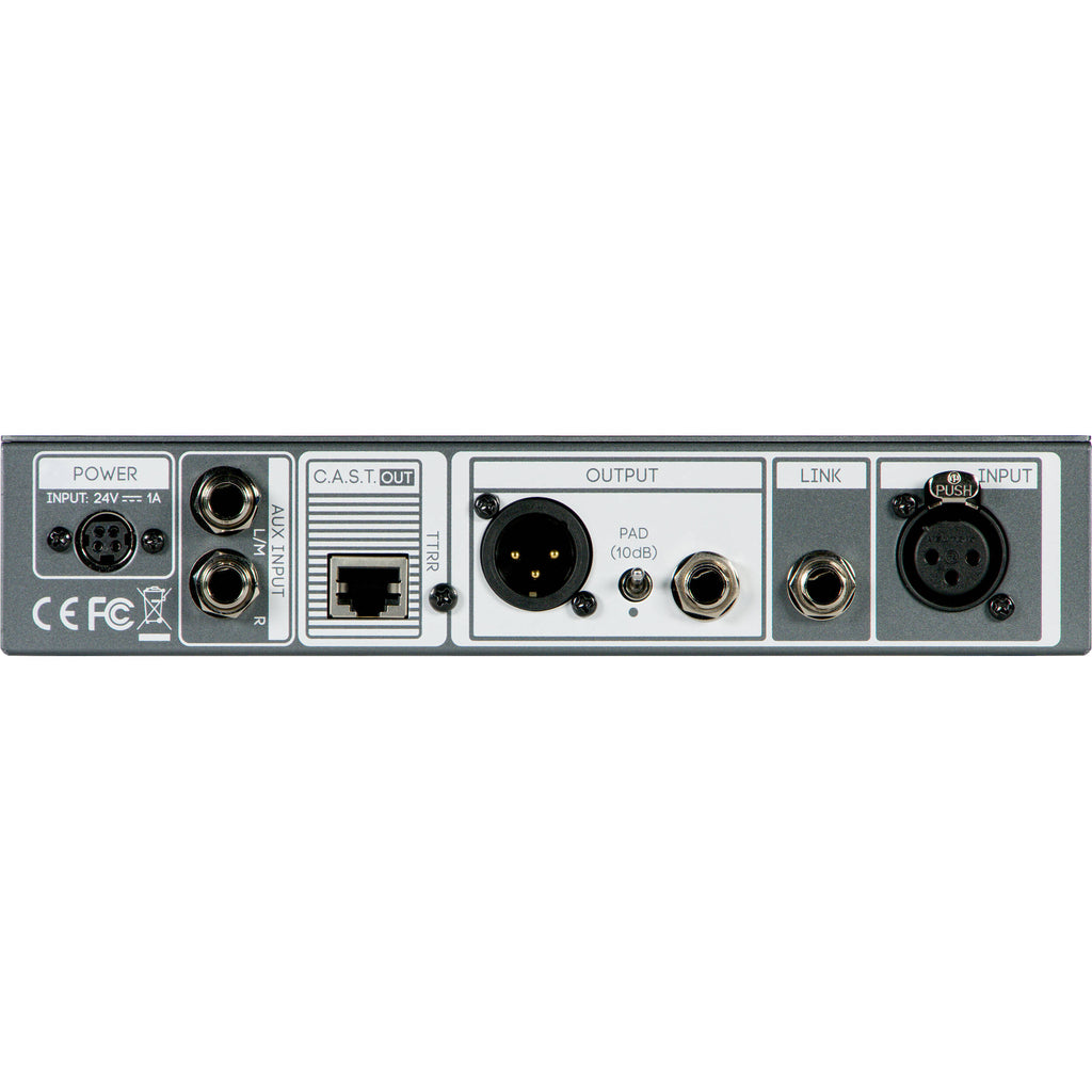 1x XLR 3-Pin Line Output 1x 1/4" TS Hi-Z/Instrument Input (Selectable Hi-Z- or Line-Level Input) 1x 1/4" Line Output 2x 1/4" TRS Headphone Output 1x 1/4" TRS Output (Link) 2x 1/4" TRS Aux Input (1 Stereo Pair, L/M and R) 1x RJ45 ADAT Output (C.A.S.T. Output) |
