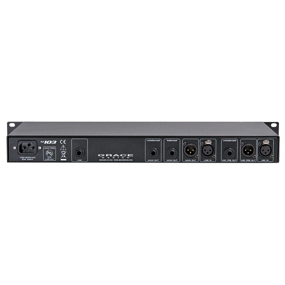 The m103 from Grace Design is a powerful tracking tool for virtually any recording situation, featuring a transformerless microphone preamplifier, 3-band EQ and an opto compressor. True to the manufacturer's heritage, the unit delivers exceptional headroom, along with musical detail and clarity. Additional features include a ribbon microphone mode, a 75Hz high-pass filter, and +48V phantom power.