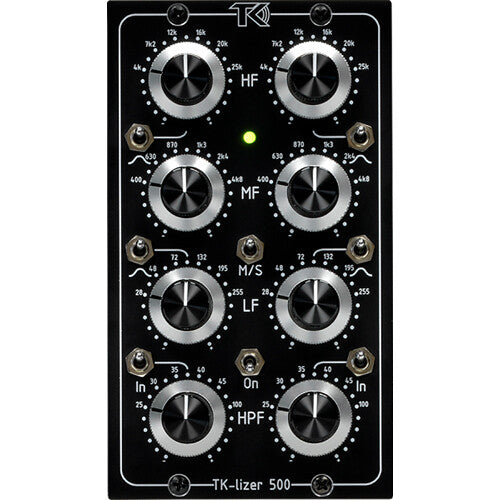 Providing three adjustable Baxandall EQ bands with low Q for wide ranging mixing and mastering applications, the TK-lizer 500 from TK Audio is a 500-series dual mono equalizer that makes it easier than ever to sculpt the perfect tone for your recordings. The TK-lizer 500 sports an innovative M/S circuit that lets you individually adjust and monitor your mid and side frequencies along with your three bands for the ultimate control over stereo width and frequency balance.