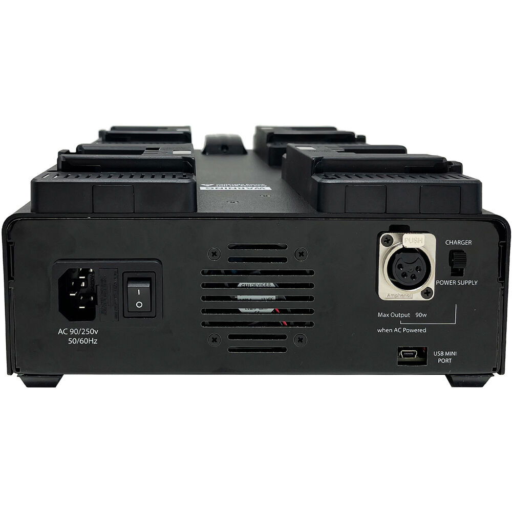 � 90 to 250 VAC, 50 / 60 Hz 1x XLR 4-Pin Female Output � 12 to 16.8 VDC (90 W) |