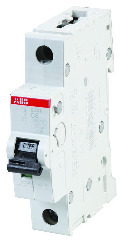 This is a 6A SP Type C MCB product from ABB with the model number S201-C6