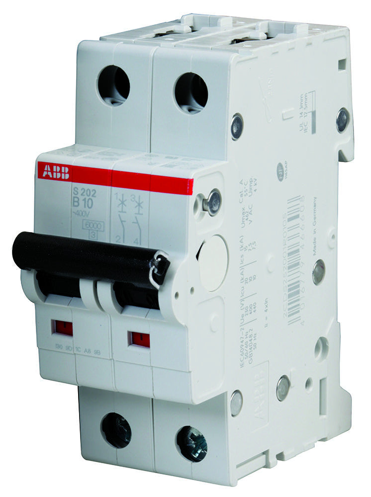 This is a 10A DP Type B MCB product from ABB with the model number S202-B10