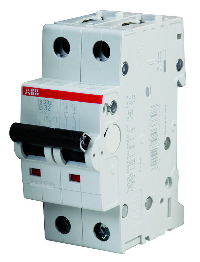 This is a 32A DP Type B MCB product from ABB with the model number S202-B32