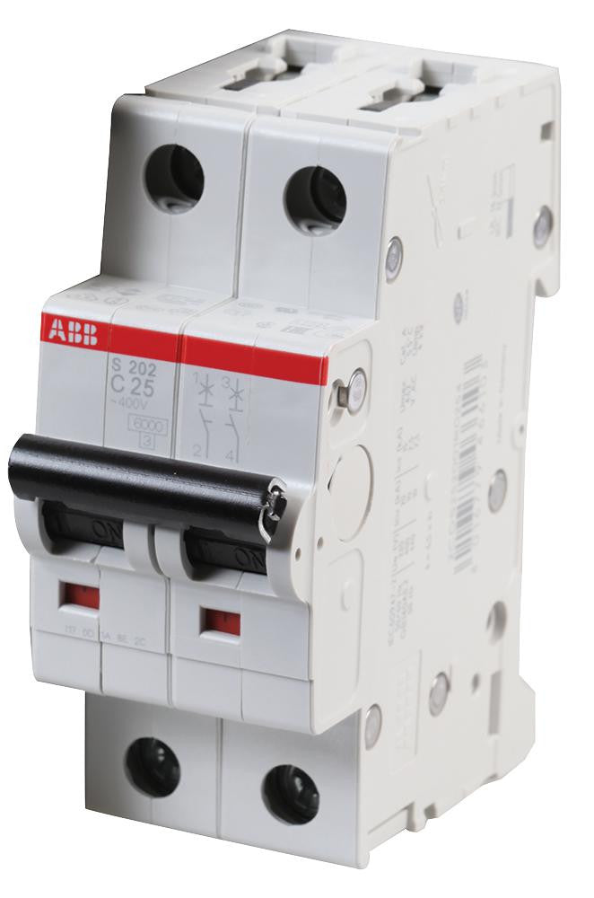 This is a 25A DP Type C MCB product from ABB with the model number S202-C25