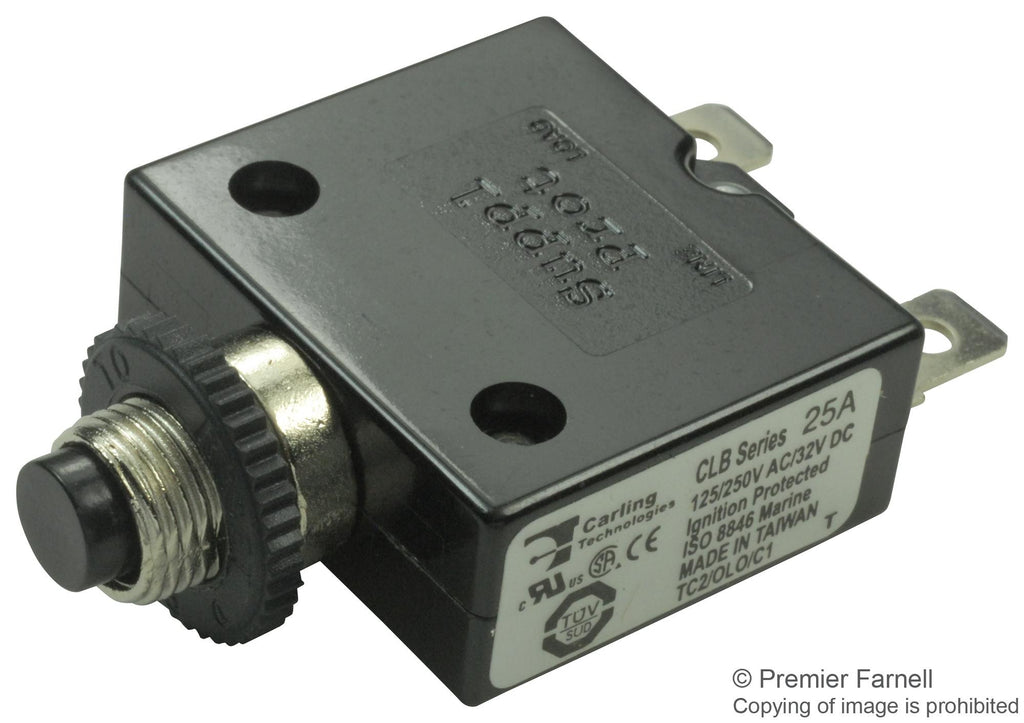 This is a CIRCUIT BREAKER, THERMAL, 1P, 250V, 25A product from CARLING TECHNOLOGIES with the model number CLB-253-11A3N-B-A