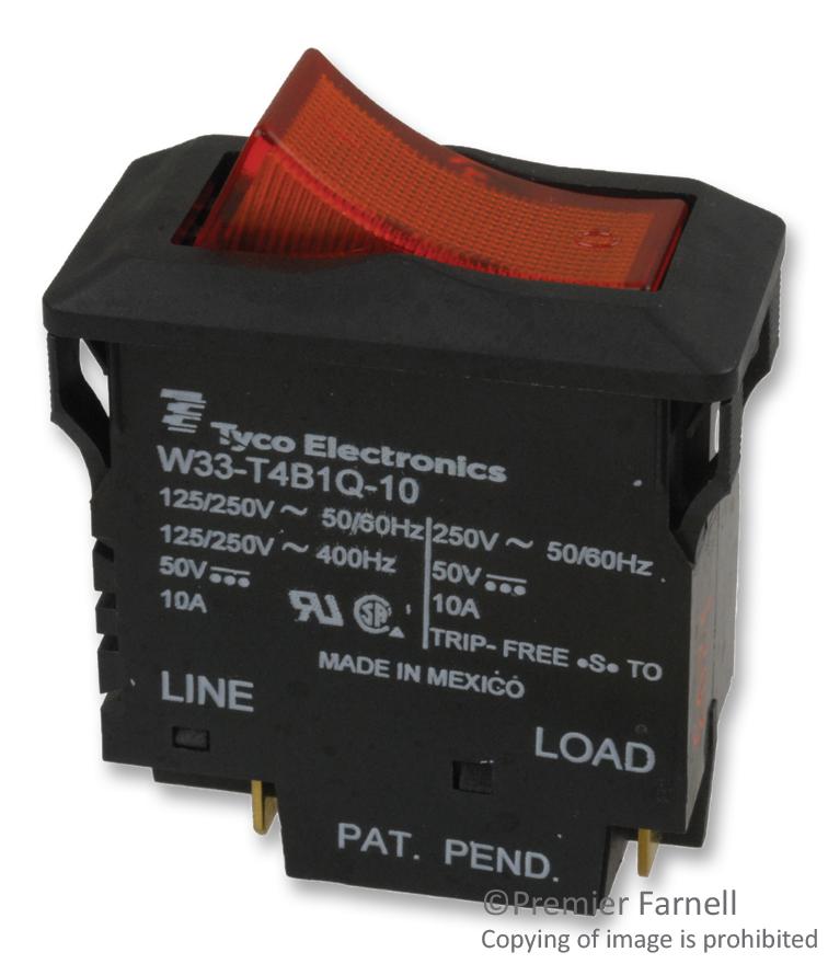 This is a W33-T4B1Q-10 CIRCUIT BREAKER , THERMAL, 2P, 250V, 10A product from POTTER&BRUMFIELD - TE CONNECTIVITY with the model number W33-T4B1Q-10