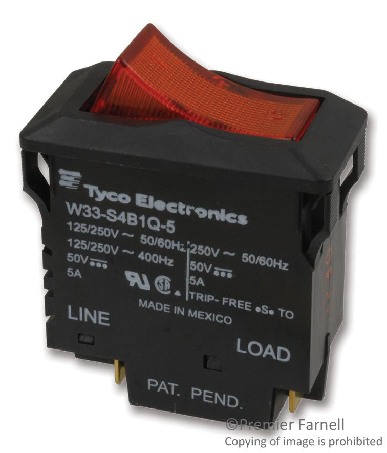 This is a CIRCUIT BREAKER, THERMAL, 2P, 250V, 5A product from POTTER&BRUMFIELD - TE CONNECTIVITY with the model number W33-S4B1Q-5