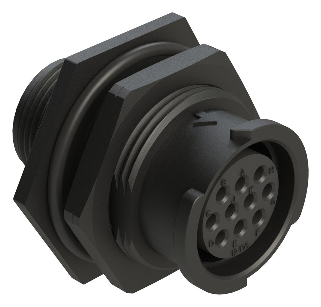 AMPHENOL SINE/TUCHEL FLS712N10S03 Circular Connector, ecomate Aquarius Fathom Lock Series, Jam Nut Receptacle, 10 Contacts