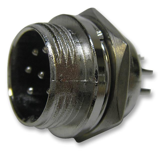 The PSG01595 is a 6-pin Circular Plug with brass body and copper contacts. This panel mount male connector has solder termination.