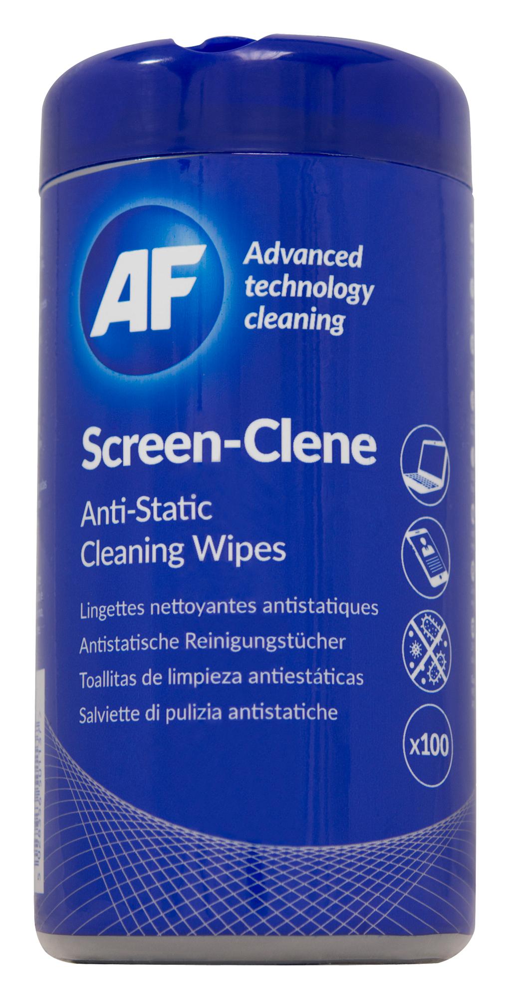 AF INTERNATIONAL SCR100T Screen-Clene Anti-Static Cleaning Wipes - Tub of 100 Wipes