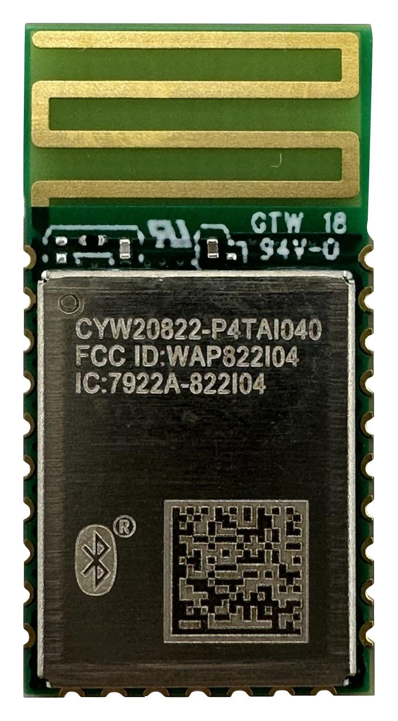 CYW20822P4TAI040XUMA1 is a fully integrated Bluetooth® low energy wireless module. It includes an onboard crystal oscillator, passive components, flash memory, and the CYW20822 silicon device. It supports peripheral functions (ADC and PWM), UART, I2C, and SPI communication, and a PDM interface. It includes a royalty-free Bluetooth® stack compatible with Bluetooth® 5.0 core spec in a 20.2 x 10.5 x 2.3mm package. It includes 1MB of embedded flash memory and is pre-loaded with EZ-Serial firmware. It is fully qualified by Bluetooth® SIG and is targeted at applications requiring cost-optimized Bluetooth® wireless connectivity.