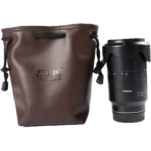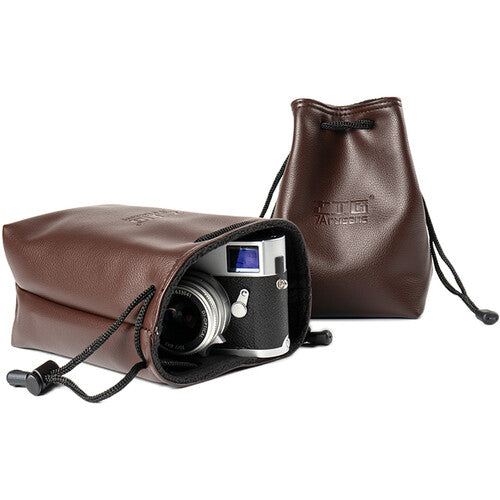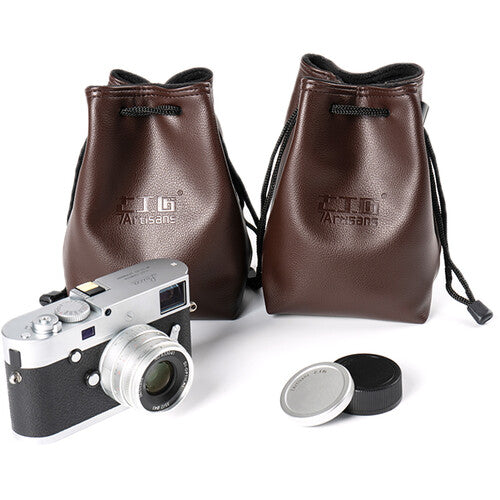 The brown 7artisans Photoelectric Camera Case is a simple way to carry your gear without being too bulky or heavy. It is made of a soft polyurethane that looks like leather to give it a refined and understated look. The interior measures 5.9 x 3.5" and has a soft flannel interior lining that won't scratch your camera's finish when you insert it or withdraw it, and a drawstring at the top closes the case. With your camera safely stowed in the case, you can put it in any bag or pack for those times when you want to bring your camera, but don't want to carry a big or obvious camera bag.