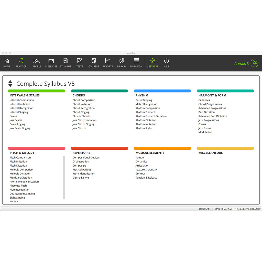 - Each of the 43 topics has carefully graded levels, allowing you to easily use Auralia with beginner through advanced students. The integrated lessons and courses provide ideal preparation for each topic.