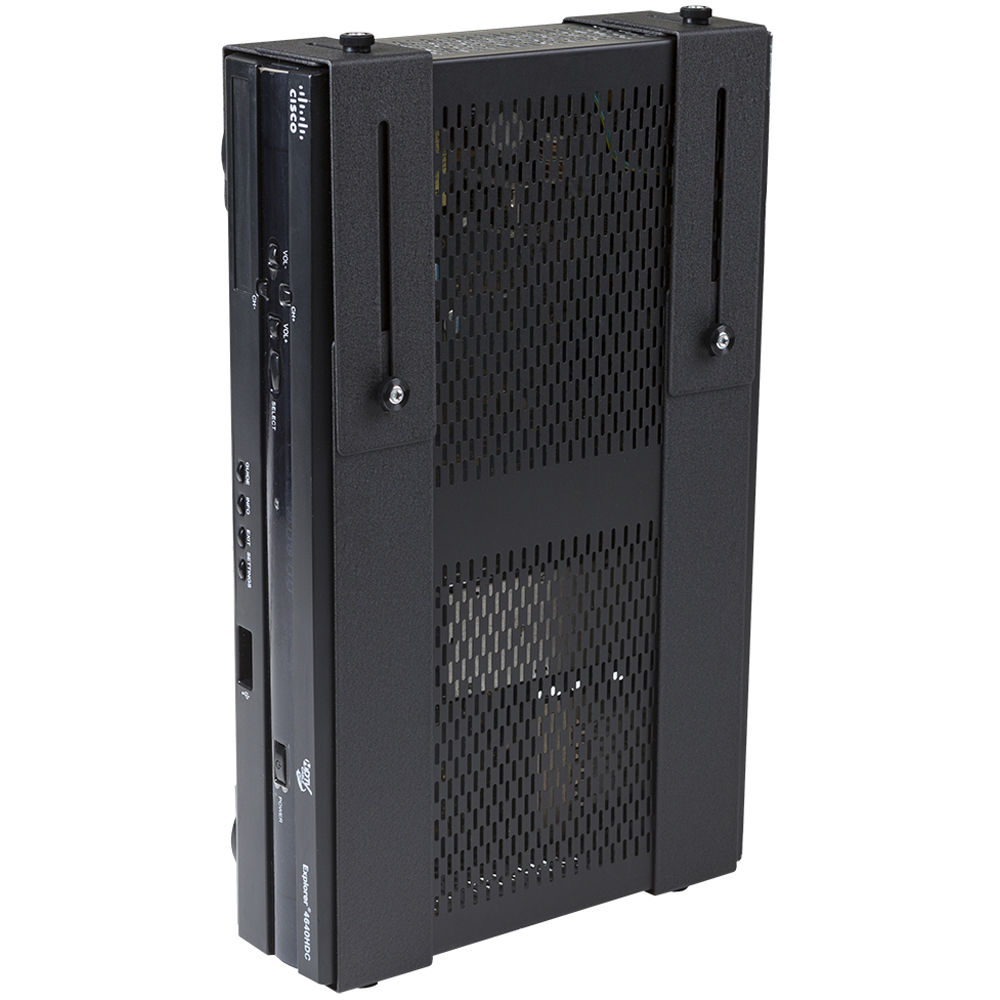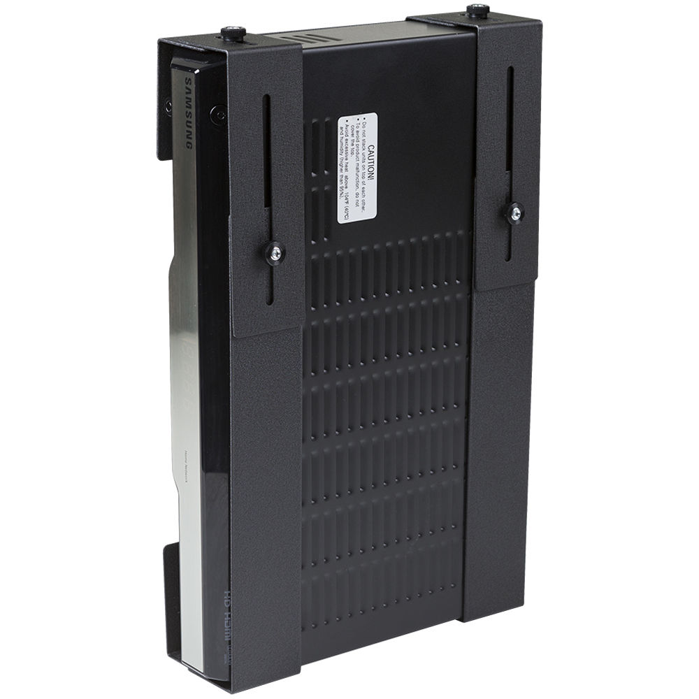 Hide your video game console, cable box, satellite receiver, DVR, security NVR, or other device behind your wall-mounted monitor with the black Adjustable Wall Mount for Medium Device from HIDEit Mounts. Its depth-adjustable design enables you to switch the mount between compatible devices without hassle. The mount allows easy access to your device's buttons, ports, and cords.
