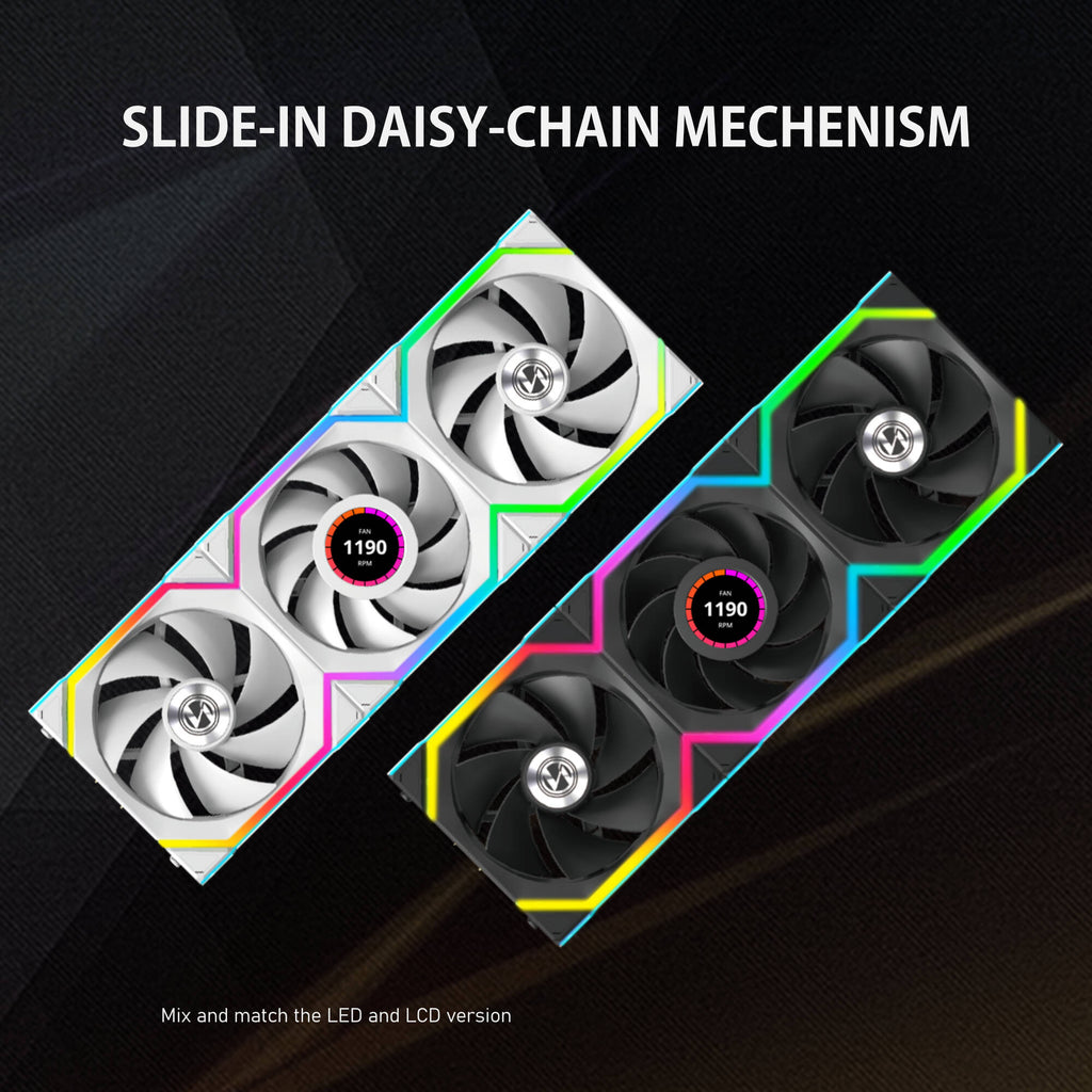 You can daisy chain multiple UNI FAN SL Wireless fans by sliding them together, which allows you to mix and match between different styles. Use the L-Connect 3 software to manage fan speeds, ARGB lighting effects, and more.
