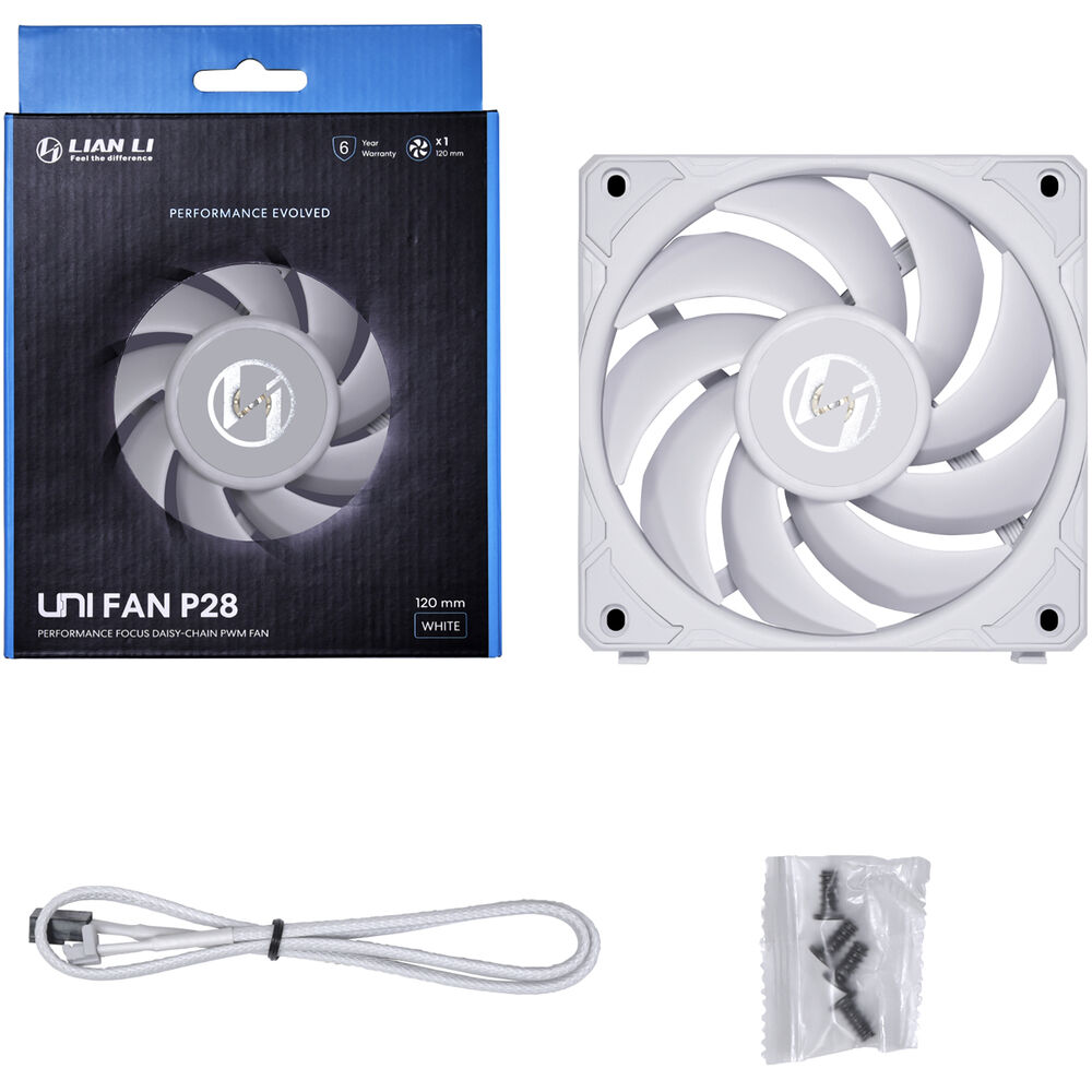 Add additional cooling to your computer with the white UNI FAN P28 Case Fan from Lian Li. This fan is cable of a max rpm of 2600 and a max noise level of 32.1 dBA to help keep your computer cool and keep the noise down. The fan is daisy chainable to allow for an easier setup and cleaner look for your build.