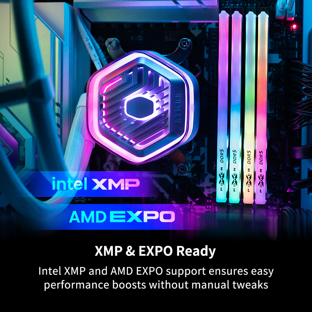 - Silicon Power 64GB Storm DDR5 6000 MHz UDIMM Memory Kit with Heat Sink (2 x 32GB, White)