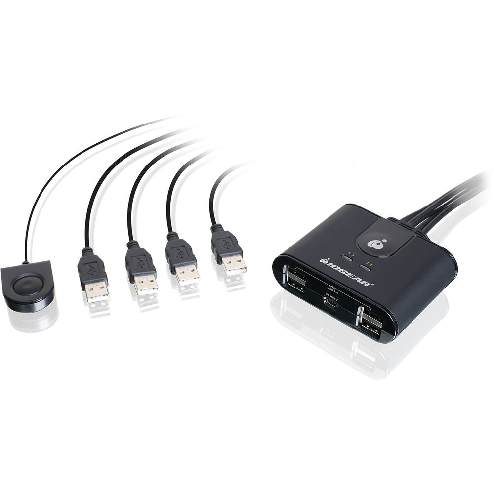 Simply press the button on the attached cable to switch to any of the connected computers. The switch is USB 2.0 compliant, and supports data transfer speeds up to 480 Mb/s. The built-in USB ports allow for the charging of smartphones or other USB-compatible devices, while LED indicators show at-a-glance which computer is active and using any peripherals that you've connected. Additional features include over-current protection, support for hot-plugging, and a molded in-cable design.General Features