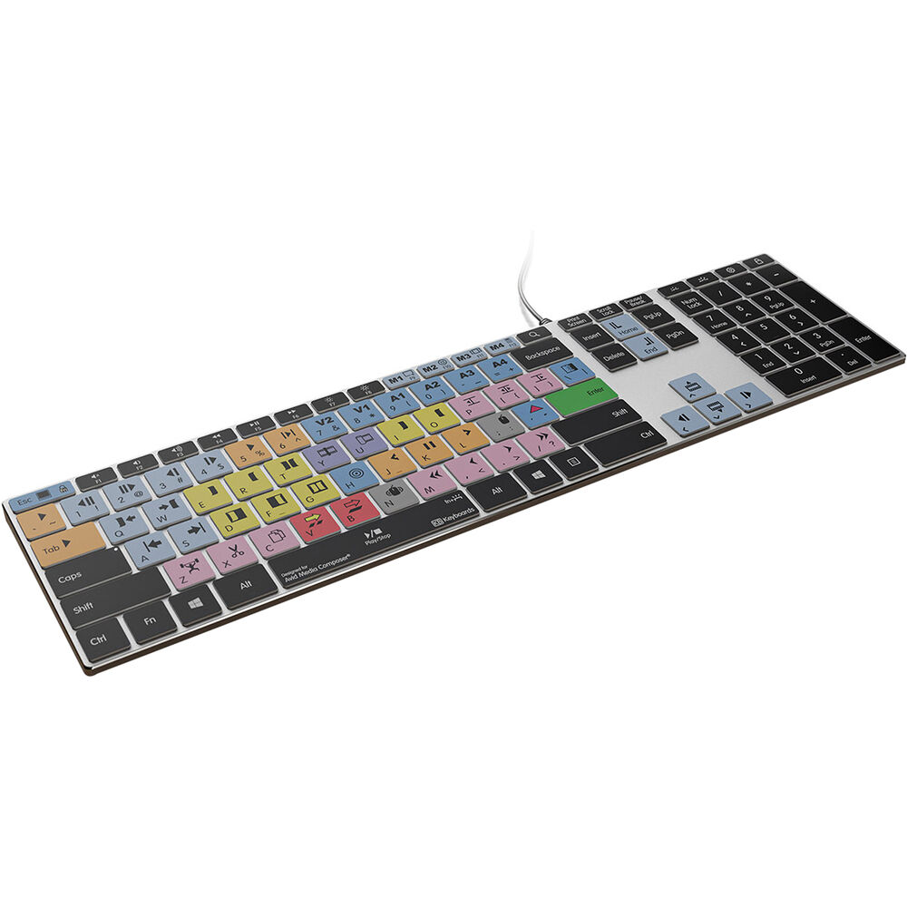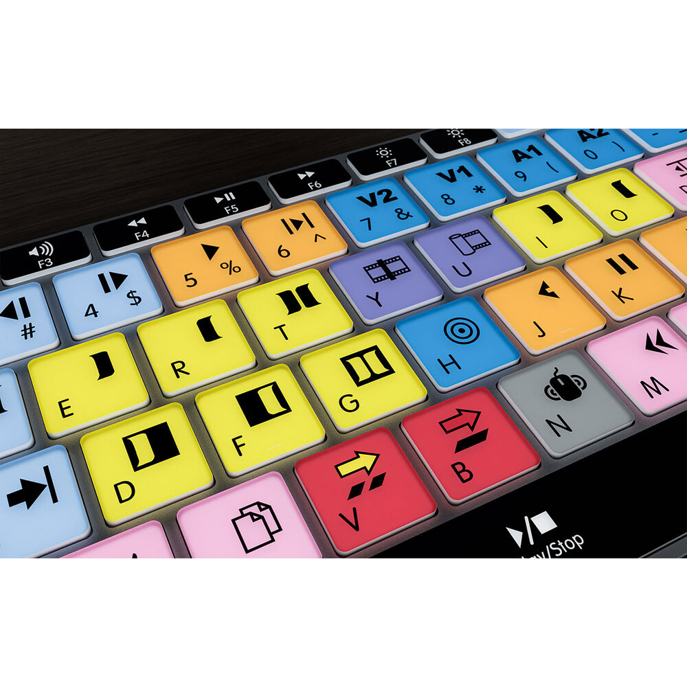 This Windows Backlit Avid Media Composer Keyboard from Keyboard Covers is fully backlit so you can work all through the night or reduce eye strain in a dimly lit edit room. A backlit keyboard is the ultimate way to accelerate your workflow and greatly enhance your editing. This keyboard features numerous shortcuts and cleverly color groups them so that you can find similar tools faster. Each key features the shortcut icon, shortcut text, and the keyboards standard typing letters for regular typing.