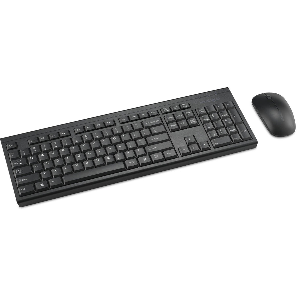 This Kensington KM150 EQ Wireless Desktop Set provides a full-size keyboard, a mouse, and a wireless USB-A receiver for a completely cable free experience. With plug-and-play compatibility with Windows and macOS, the secure 2.4 GHz wireless connectivity supports 128-bit AES encryption, making it ideal for education, corporate, or enterprise environments.