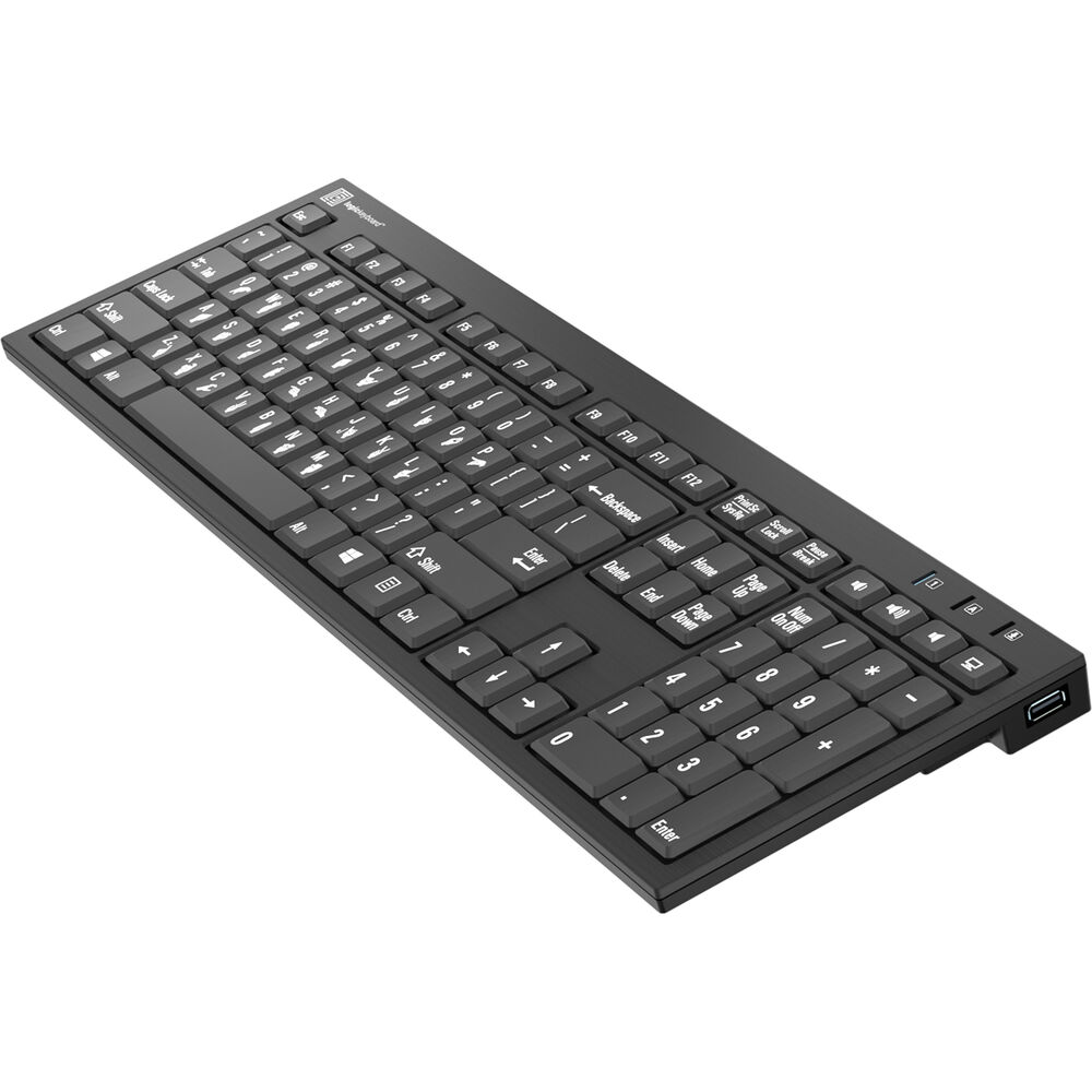 Compatible with Windows XP, Vista, and 7-10, as well as macOS, this keyboard uses scissor-switch keys and connects to your host system using an integrated 4.9' USB Type-A cable. There are also two USB 2.0 Type-A ports that serve as a hub for connecting additional devices.