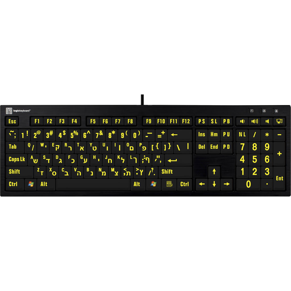 Logickeyboard XL Print NERO PC Slimline Large Print American English and Hebrew Keyboard (Yellow On Black)