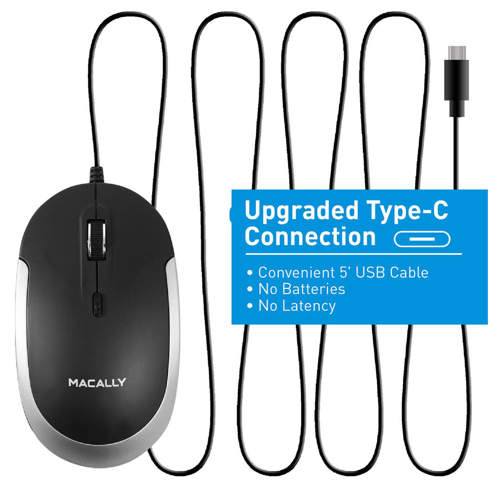 Macally USB Type-C Optical Mouse (Black/Space Gray)