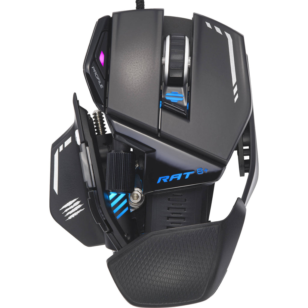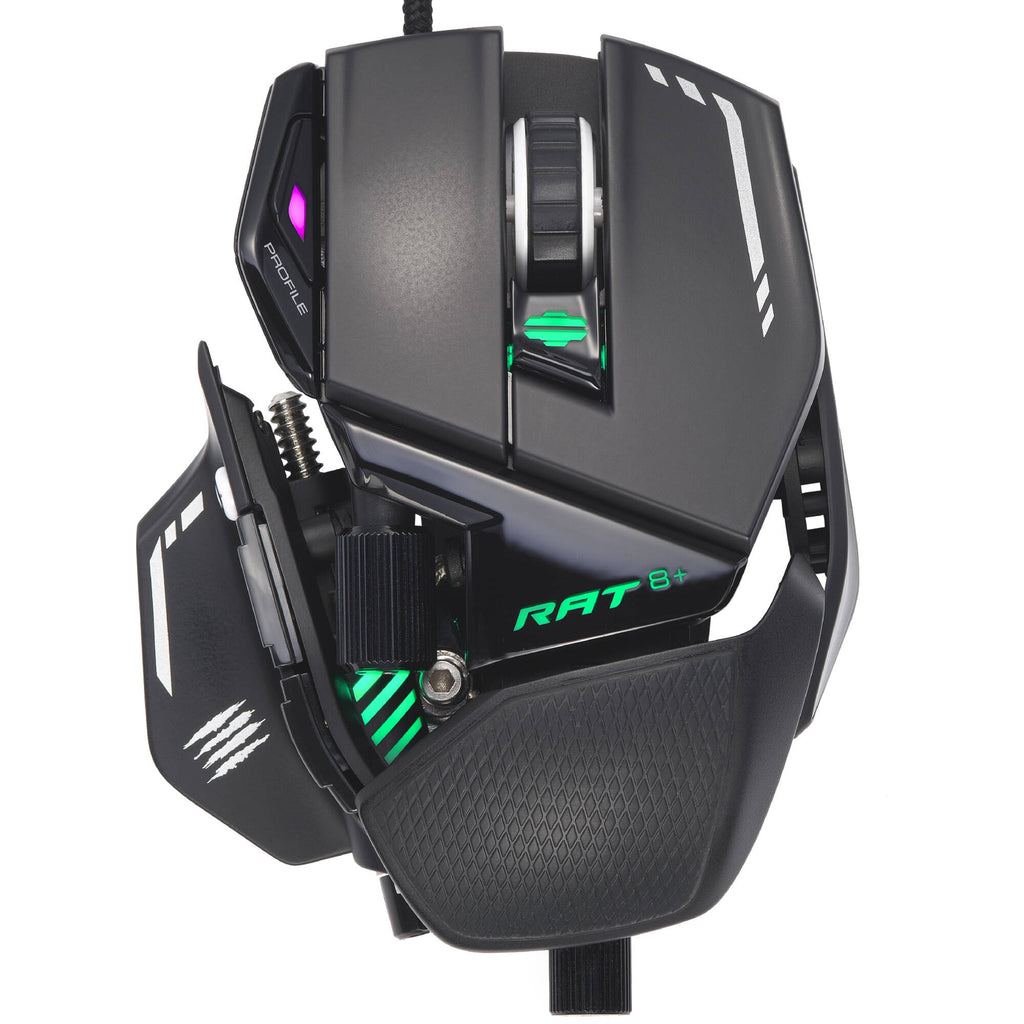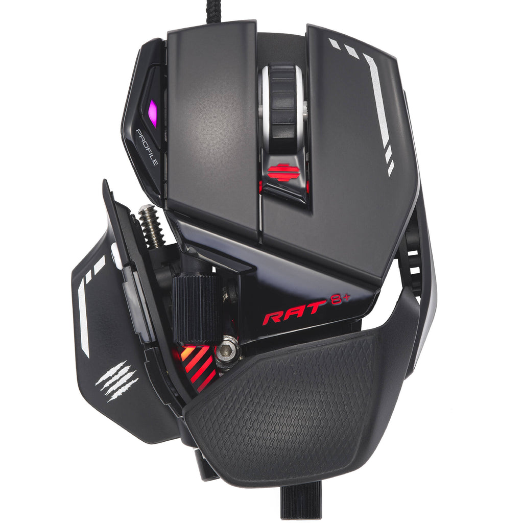 Mad Catz R.A.T. 8+ Fully Adjustable Gaming Mouse. Featuring an adjustable body and enhanced sensors, the R.A.T. 8+ gives competitive players a litany of customization options to maximize their in-game prowess and gain the upper hand in battle.