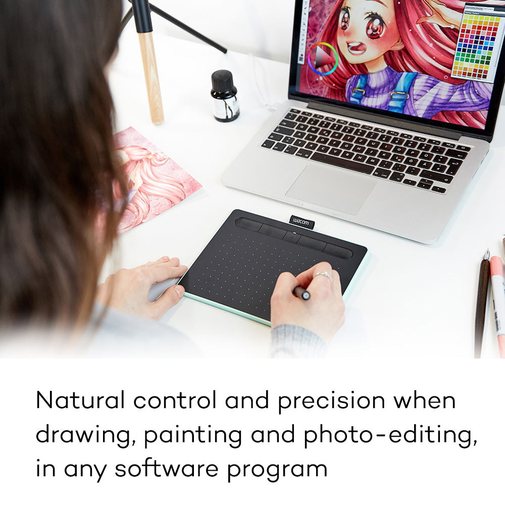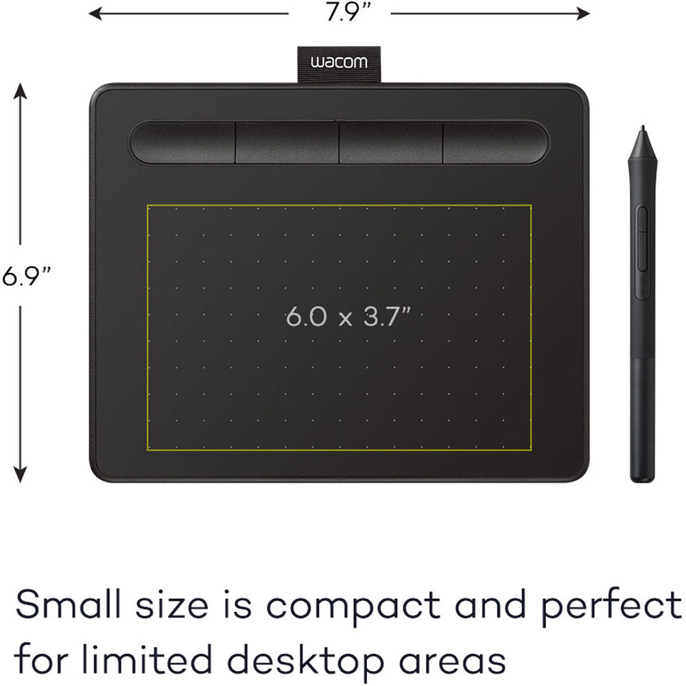With the Intuos Creative Pen Tablet from Wacom , you can bring your designs, ideas, and artwork into the digital realm. It features a 6.0 x 3.7" drawing area, ideal for space-limited desktops, and is compatible with both left- and right-handed users. Located at the top are four customizable ExpressKeys that place frequently used commands such as copy, paste, and undo right at your fingertips. Moreover, it comes with a pressure sensitive stylus for the control and precision you need in creative software. Included with this device is your choice of a downloadable software featuring Corel Painters Essentials or Corel AfterShot.