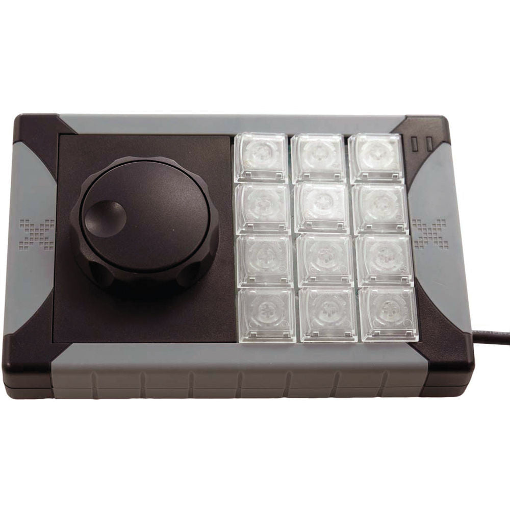 Enhance your productivity with the X-Keys XK-12 Jog and Shuttle . This interface has twelve user-definable keys with a jog wheel and shuttle key that have addressable back-lighting in a low profile footprint. Designed for handheld, mounted, or desktop use, the XK-12 can be used in portrait or landscape orientation. Its full-travel keys mimic the feel of a traditional keyboard and the included angled feet let you give the unit a slight tilt. Blue and red addressable back-lighting enhances key identification in low light environments.