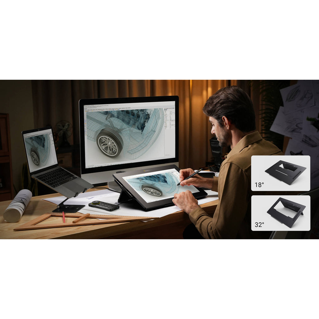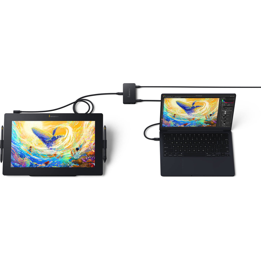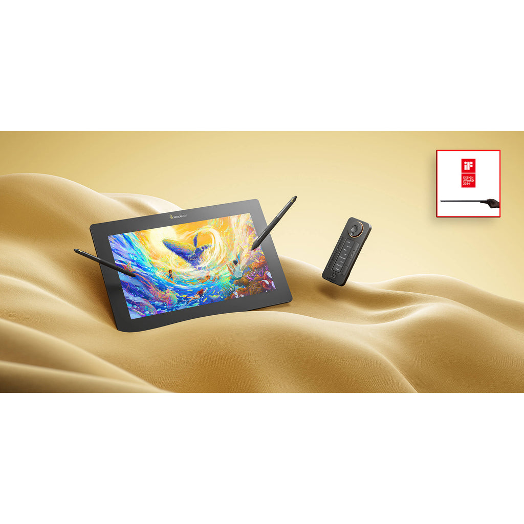 Designed for maximum versatility, the slim 16" 4K OLED pen display has a 13.6 x 7.6" active area and may be connected directly to a DisplayPort in Alt Mode compatible USB-C port with a single cable. Alternatively, you can use the included Hub for HDMI and DisplayPort connectivity. A 3-button standard pen is included alongside a thin pen, both of which have erasers, 8192 pressure levels, ±60° tilt, and don't require batteries. Additionally, the customizable Quick Keys wireless remote has a built-in OLED display and provides you with fast access to your favorite shortcuts and tools. Other accessories include a mobile easel stand, drawing glove, cleaning cloth, and carrying case.