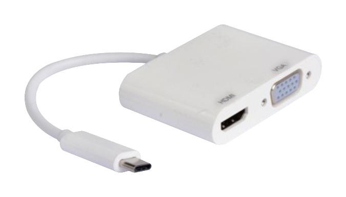 This Multicomp Pro 83-22065 is a USB Type-C to HDMI and VGA adapter. It allows you to transmit signals from a Type-C source to a high definition HDMI or VGA display (TV sets, projectors, etc). It can work on Macbook or Google new Chromebook Pixel and other USB-C supported devices. With this product, you can watch videos or slideshows together on the big screen.