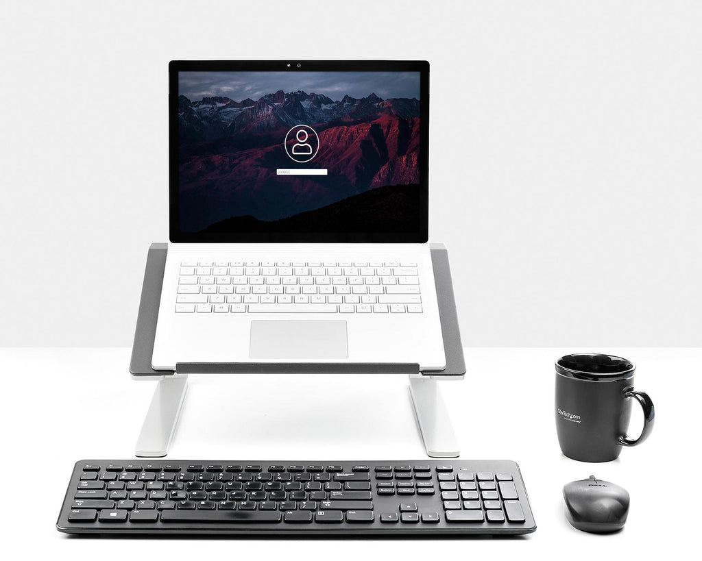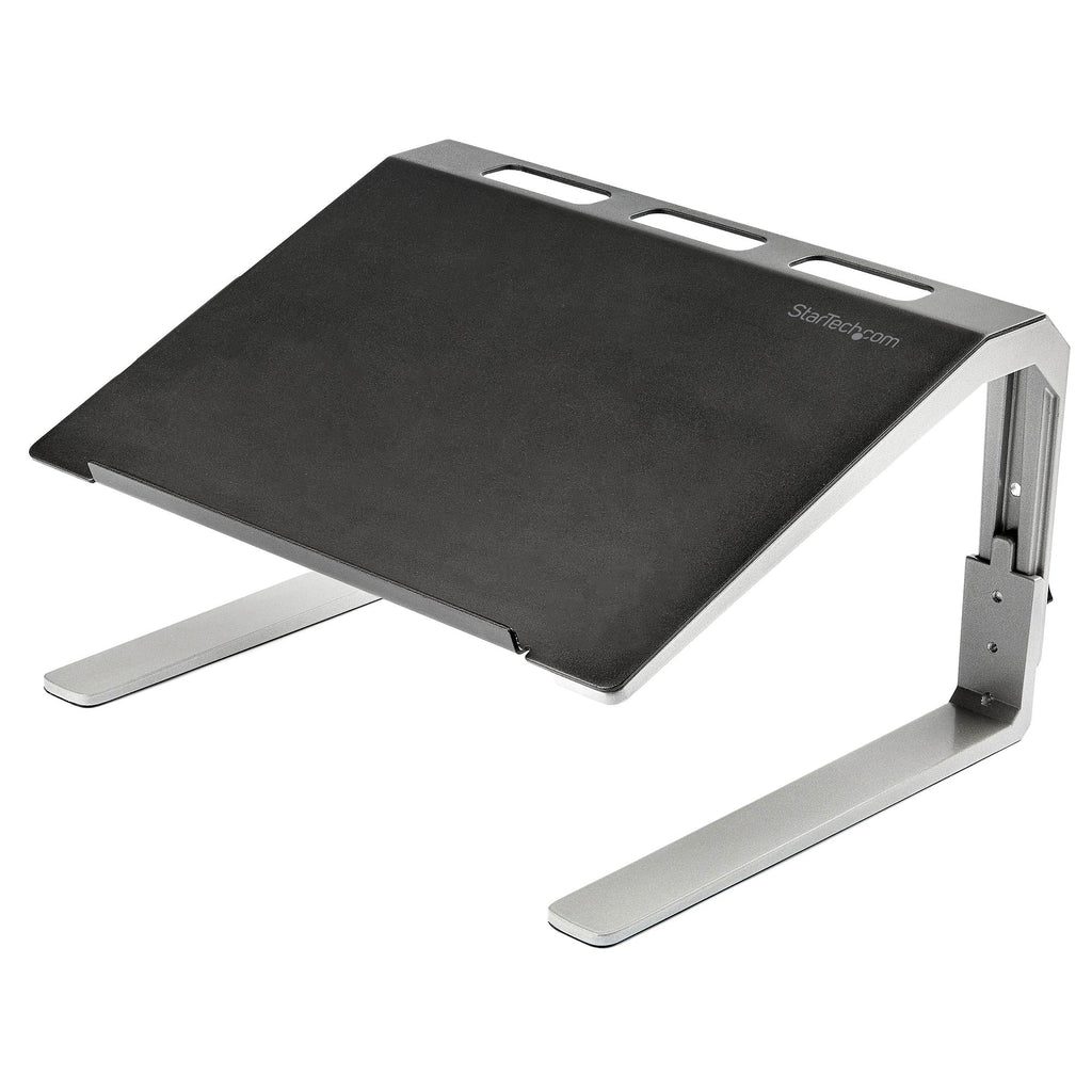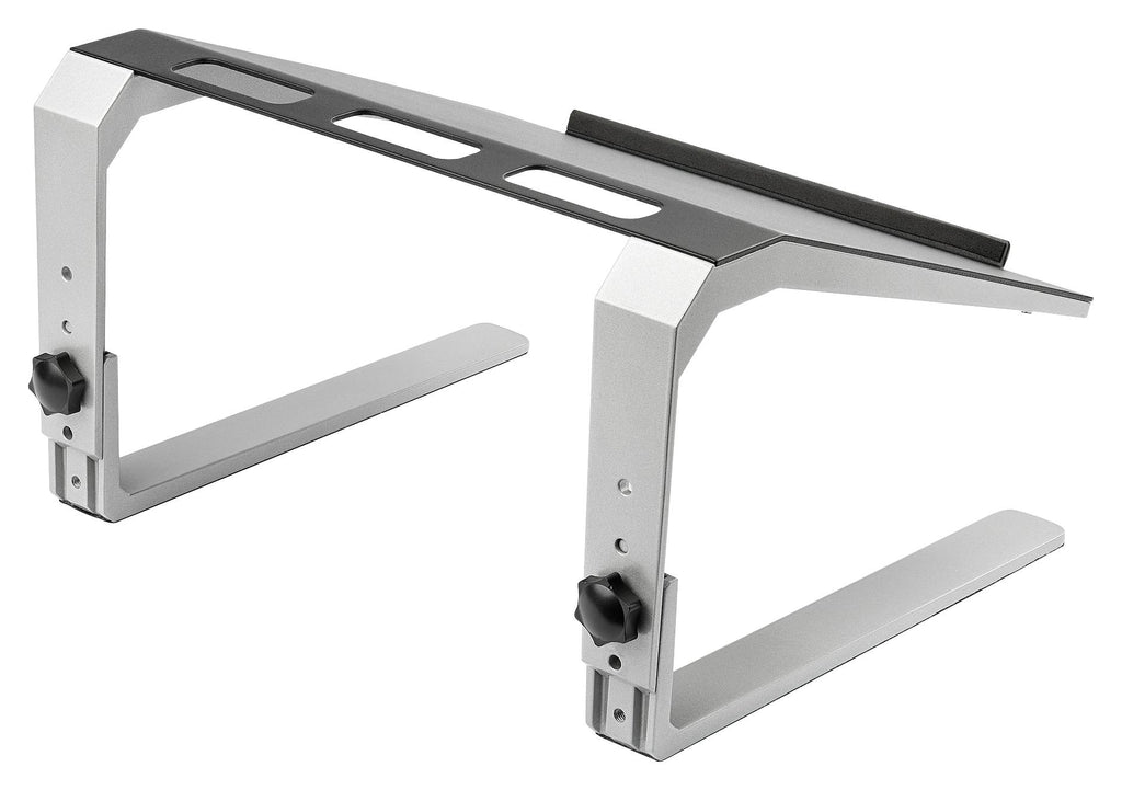 Ergonomic laptop stand with tilted angle to ensure comfortable viewing and typing. The stand is fully adjustable with three height settings to suit your needs. The LTSTND features heavy duty construction with a steel laptop tray and aluminium legs to create a stable working platform.