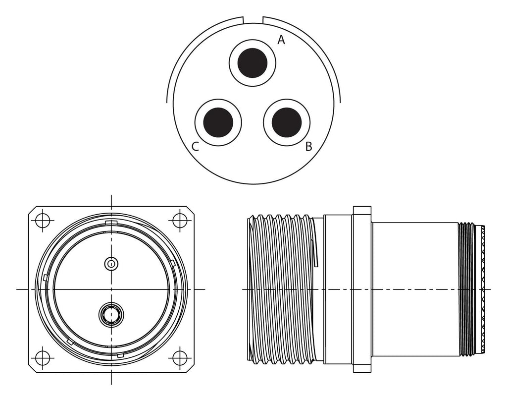 This is a TVM00DS-23L-2P CIRCULAR CONN , RCPT, 3POS, WALL MOUNT product from AMPHENOL AEROSPACE with the model number TVM00DS-23L-2P