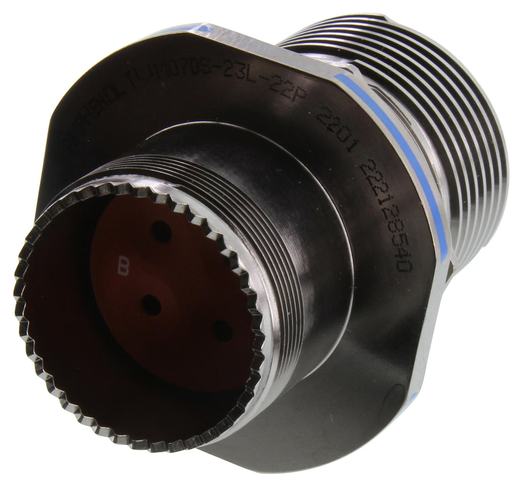 This is a TVM07DS-23L-22P CIRCULAR CONN , RCPT, 4POS, JAM NUT product from AMPHENOL AEROSPACE with the model number TVM07DS-23L-22P