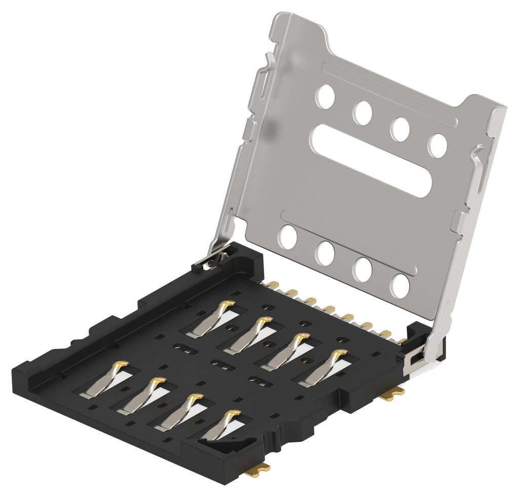 TE CONNECTIVITY 2499165-1 Memory Card Connector, Micro SIM, Hinged, 8 Contacts, Copper Alloy
