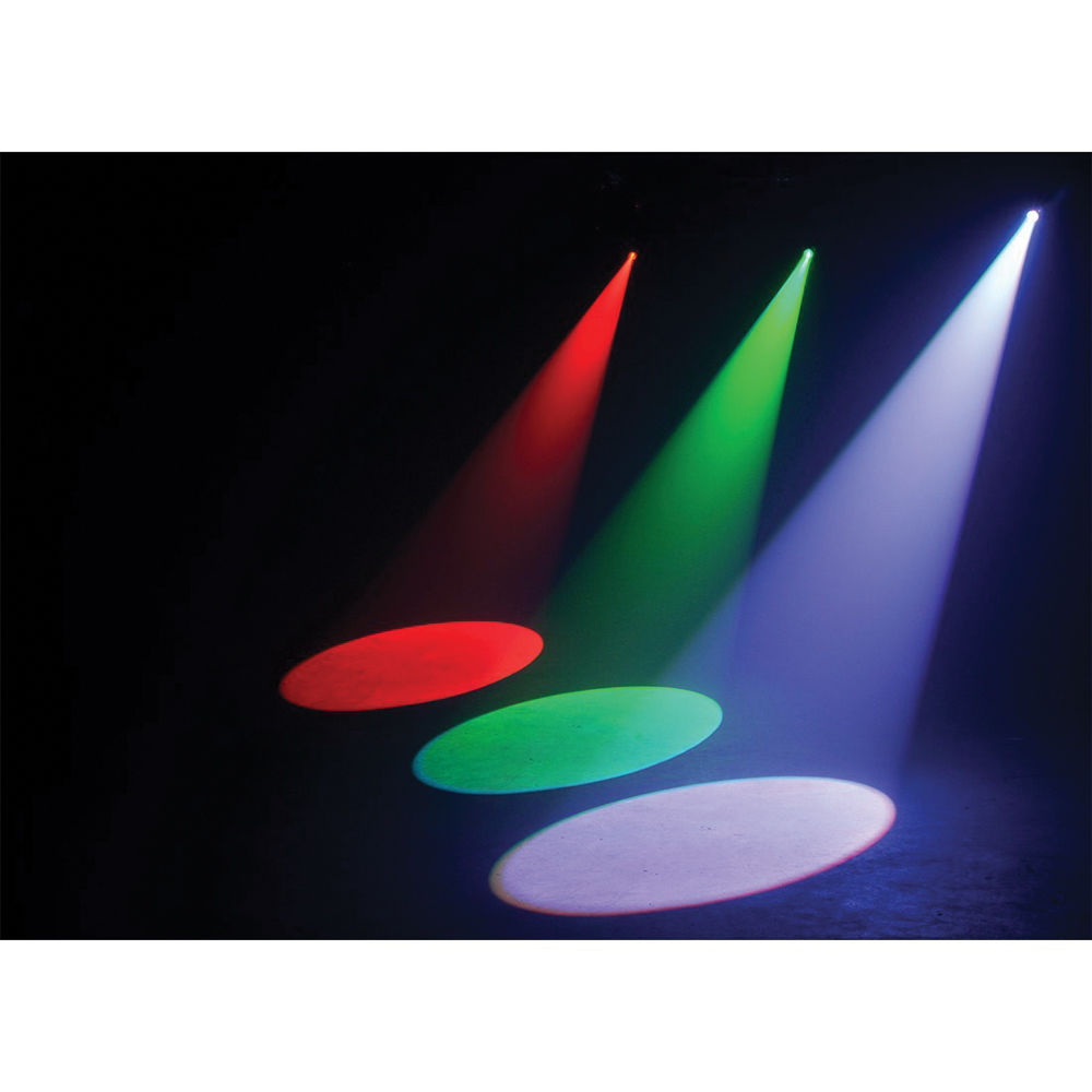 - 8W quad (4-in-1) RGBW LED pinspot (rated at approximately 10,000 hours)