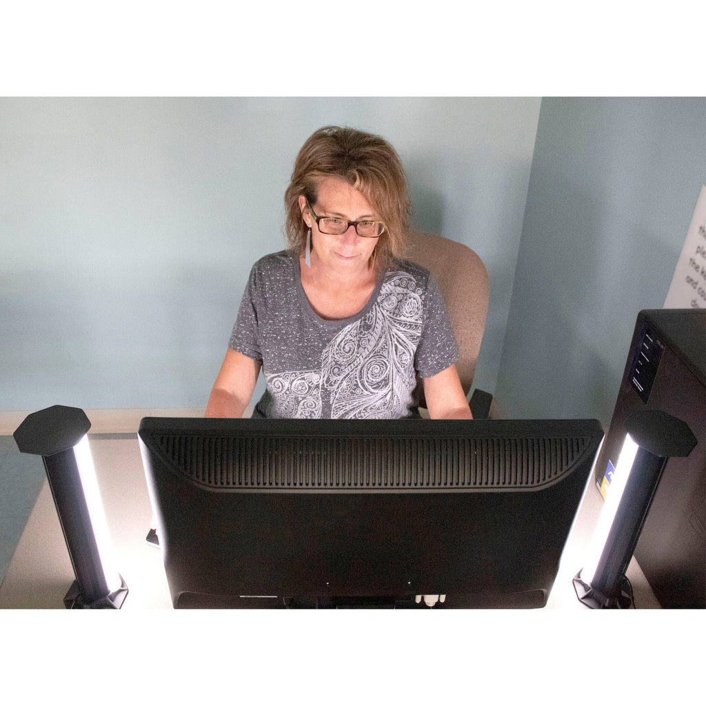 CRI: 90, AC Adapter, Aluminum HousingOctagonal Ends Prevent RollingAC Adapter with 6' Cord Whether you're vlogging, in a Zoom meeting, Facetiming with your manager, or just need a wide, soft light to easily access items on your work desk, this Personal Light from Apollo Design is your illumination solution. The light measures one foot and has a color temperature of 3000K. The ends of the aluminum housing are octagonal to prevent it from rolling when placed on a flat surface. The light can stand up on its end or be used on each side your computer for frequent meetings with the separate purchase of an additional fixture. The light comes with an AC adapter that has a rocker switch cord measuring six feet.
