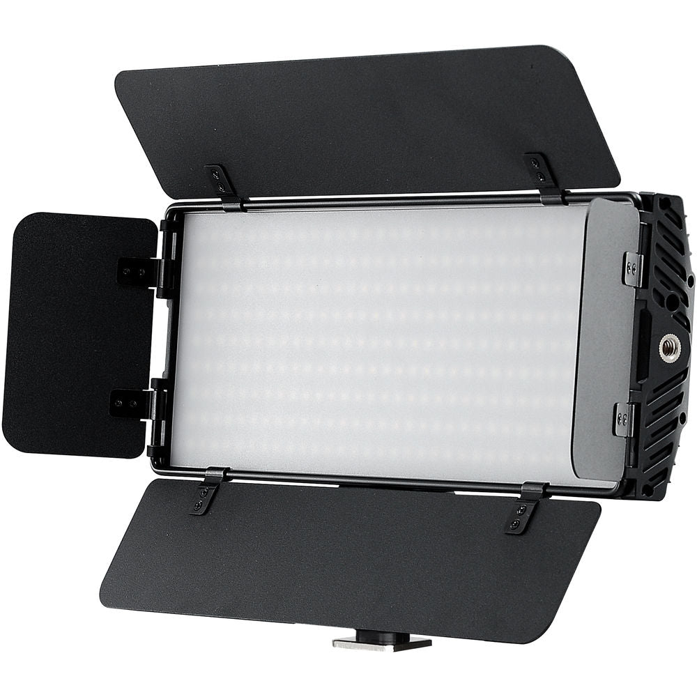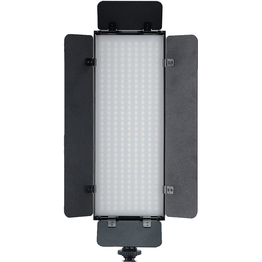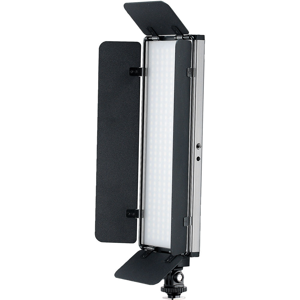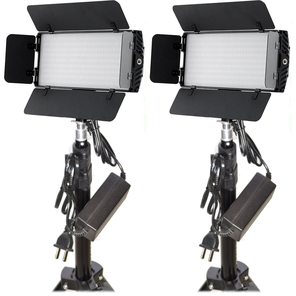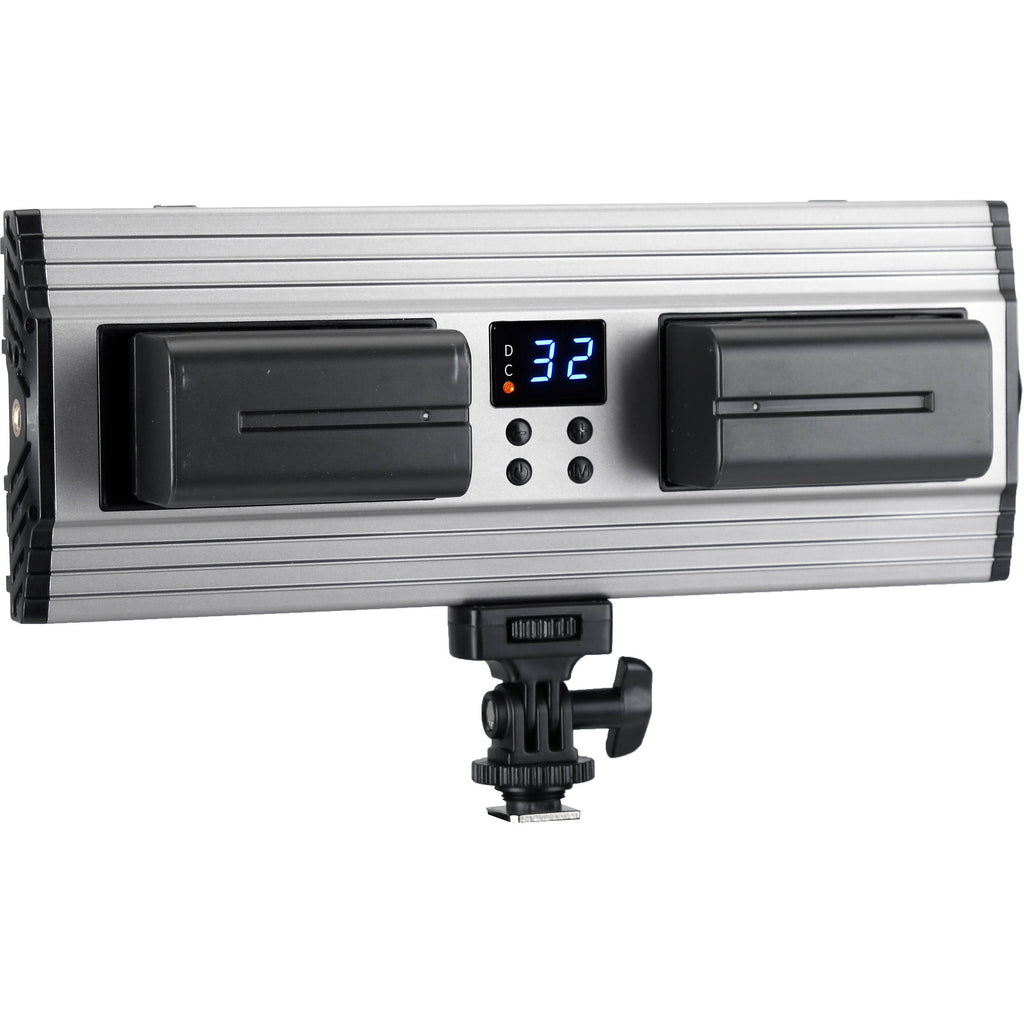Light your next shoot with the Photon LED 2-Light Kit from Bescor . This kit includes two Photon LED panels in addition to a power adapter and light stand that can stretch up to 78" tall. With a color temperature range of 3200-5600K, the Photon light panel is applicable in a wide variety of situations. It is also dimmable, and the dim level and color temperature are both visible on a digital display on the back of the device. The panels also feature a 1/4"-20 thread mount on the bottom and sides for horizontal or vertical mounting and can be powered by the included power adapter or optional NP-F batteries.