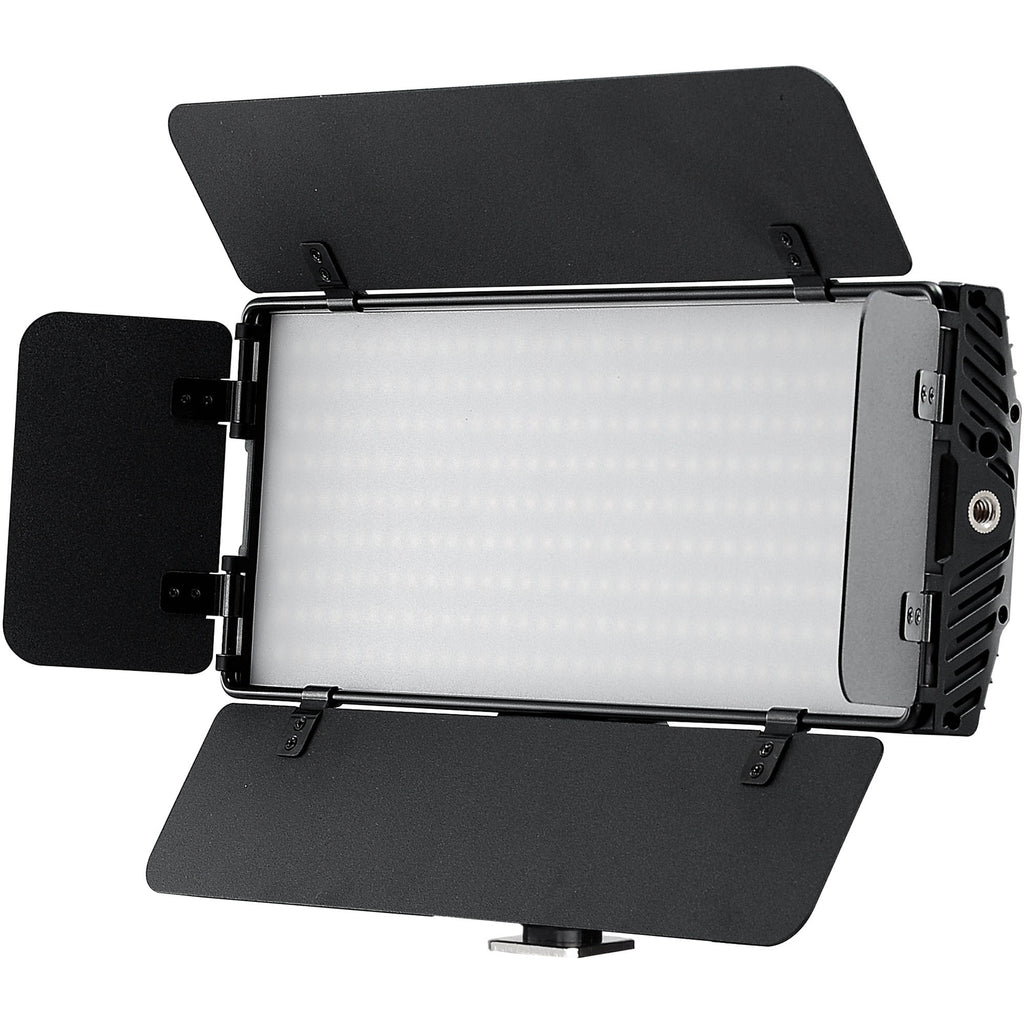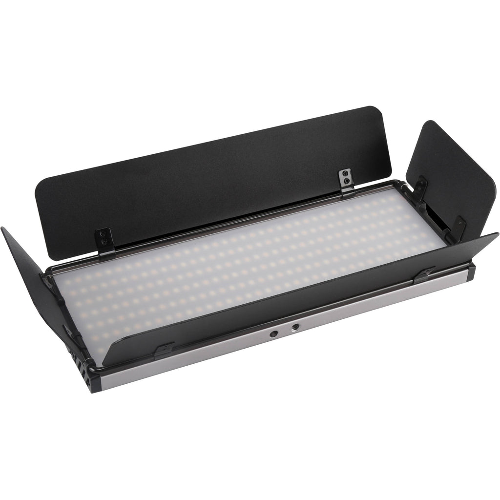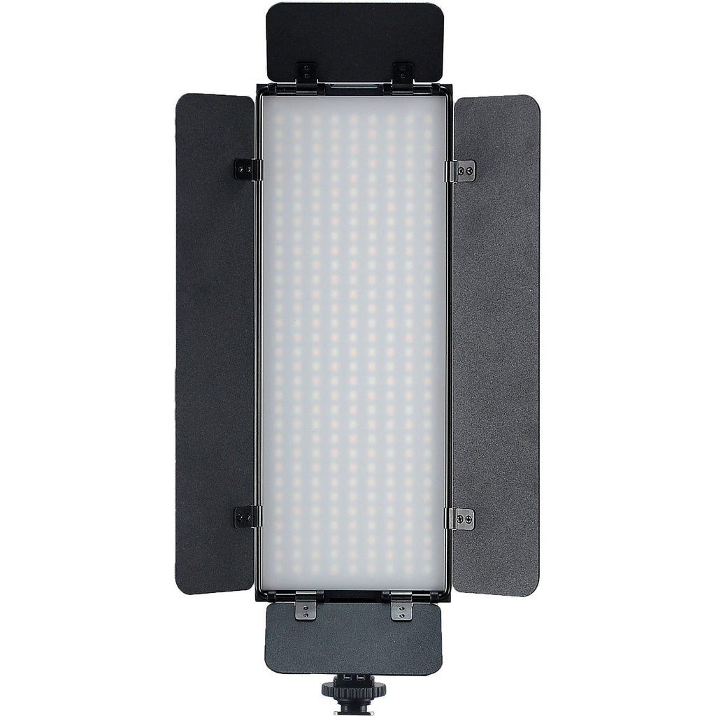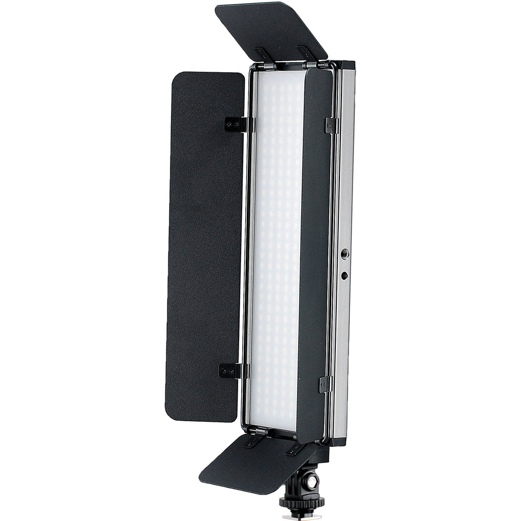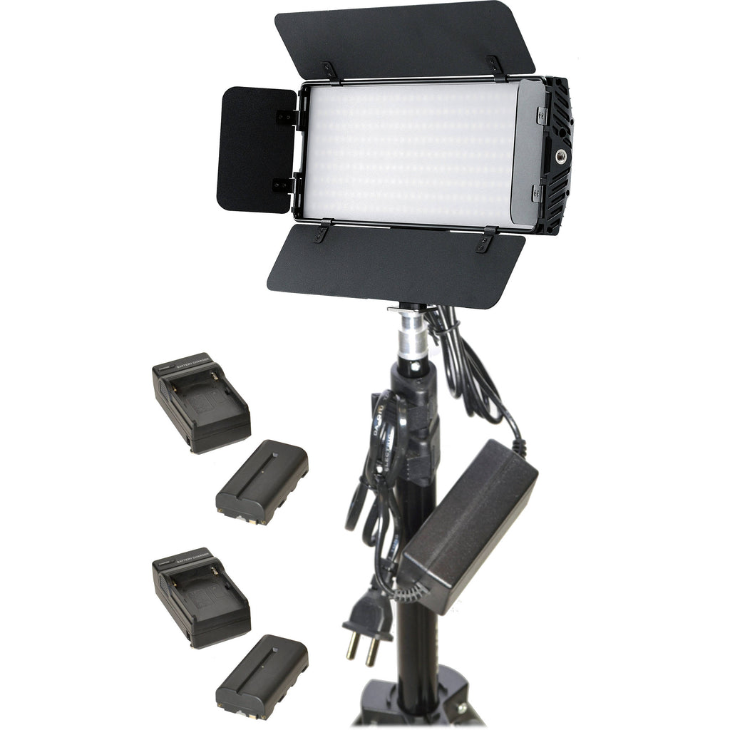 Light your next shoot with the Photon Single-Light Battery Kit from Bescor. This kit includes one Photon LED panel in addition to a power adapter, batteries, battery chargers, and a light stand that can stretch up to 78" tall. With a color temperature range of 3200-5600K, the Photon light panel is applicable in a wide variety of situations. It is also dimmable, and the dim level and color temperature are both visible on a digital display on the back of the device. The panels also feature a 1/4"-20 thread mount on the bottom and sides for horizontal or vertical mounting and can be powered by the included power adapter or NP-F batteries.