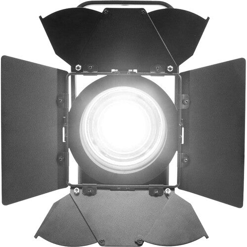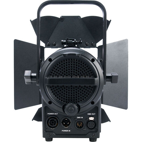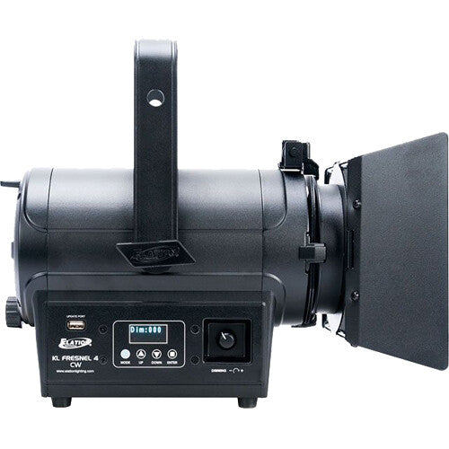 The KL Fresnel 4CW allows for onboard adjustments with a knob and four buttons on one of its sides, plus a display so you can view your menu and settings. If DMX control is desired, you can instead connect an optional controller via the 5-pin XLR in and out ports in the back. Designed to be resilient, the LED light is rated to last 50,000 hours on average and can have its software upgraded via a USB slot. The fixture runs on universal 100-240 VAC power, accepts powerCON cables, and includes a gel frame and barn doors so you can easily shape the look and feel of your light.