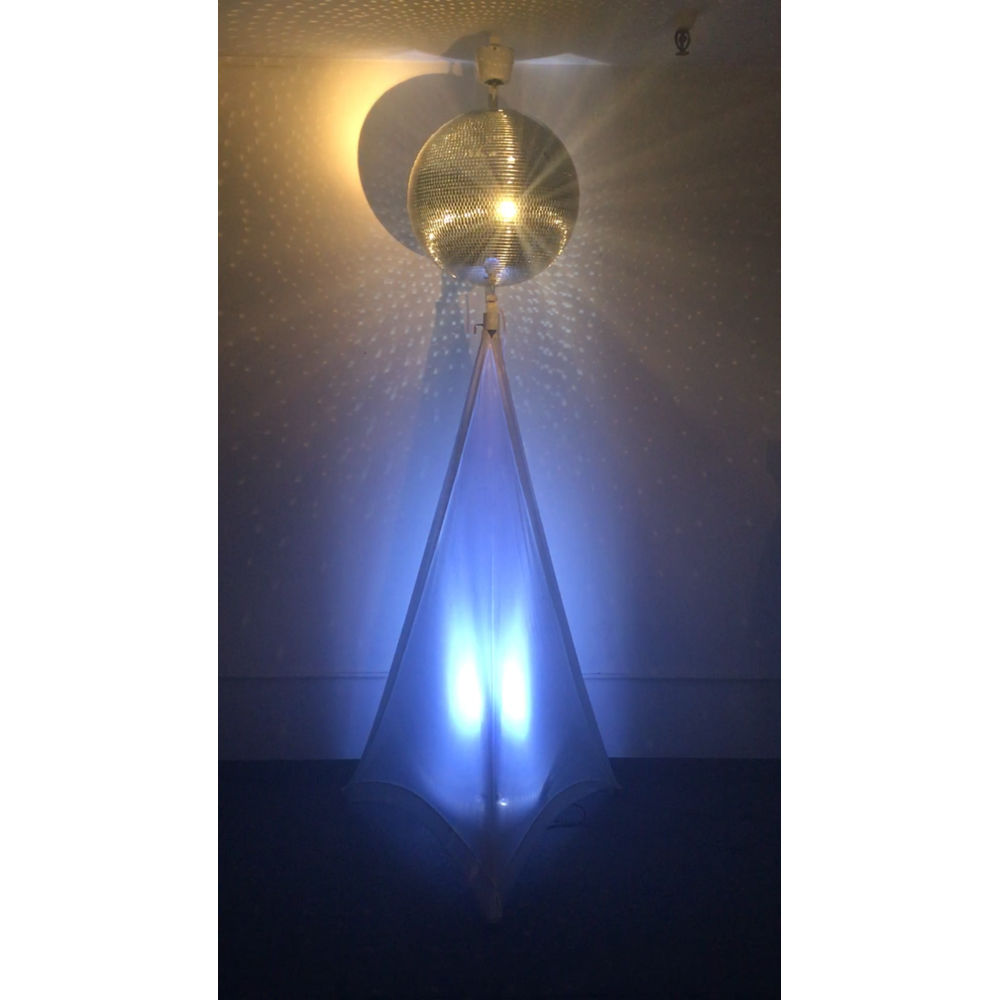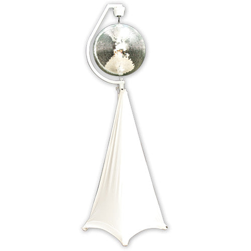The Decor Mirror Ball Stand with Motor from Eliminator Lighting is a tripod stand with a mirror ball motor that is capable of holding a mirror ball from 8 to 20" in size. The speed of the motor is 3 rpm. The stand and motor kit includes a white scrim to cover the tripod legs. The power cable is built with an on/off switch and is 5' long. The mirror ball is sold separately.