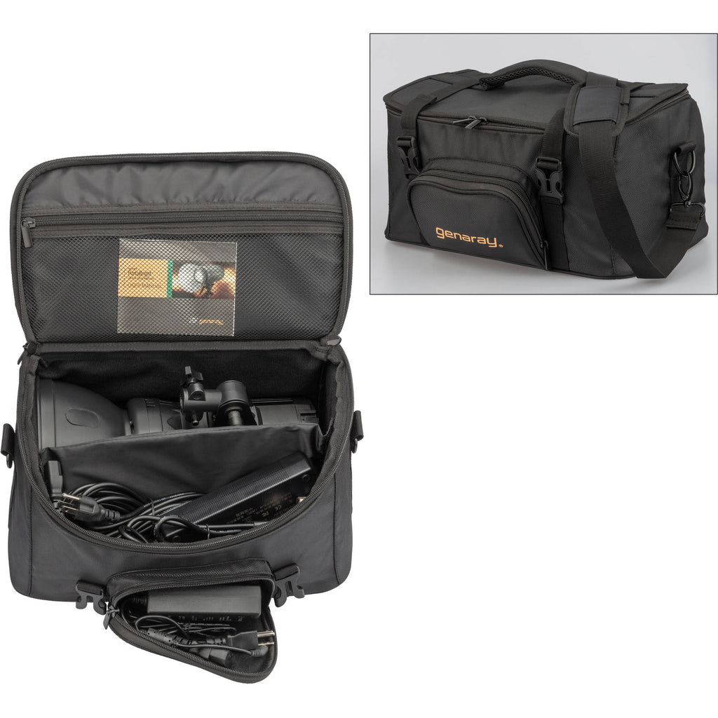 The PortaBright Bi-Color LED Battery-Powered Monolight from Genaray is a versatile light source with color temperature that's variable from 3200 to 6500K to blend effortlessly with ambient light on location, with other fixtures, or just for creative expression. This powerful bi-color light outputs plenty of light�almost 12,000 lux at 3 feet. The light also features 0 to 100% flicker-free dimming in 10% increments. But regardless of which power level you've chosen, color rendition demonstrates superior accuracy as indicated by its high CRI/TLCI ratings of 97.3 and 98 at 3200K. And with its lightweight and compact form factor, you can pack the PortaBright into its carry case and sling it over your shoulder to carry it to your next location.
