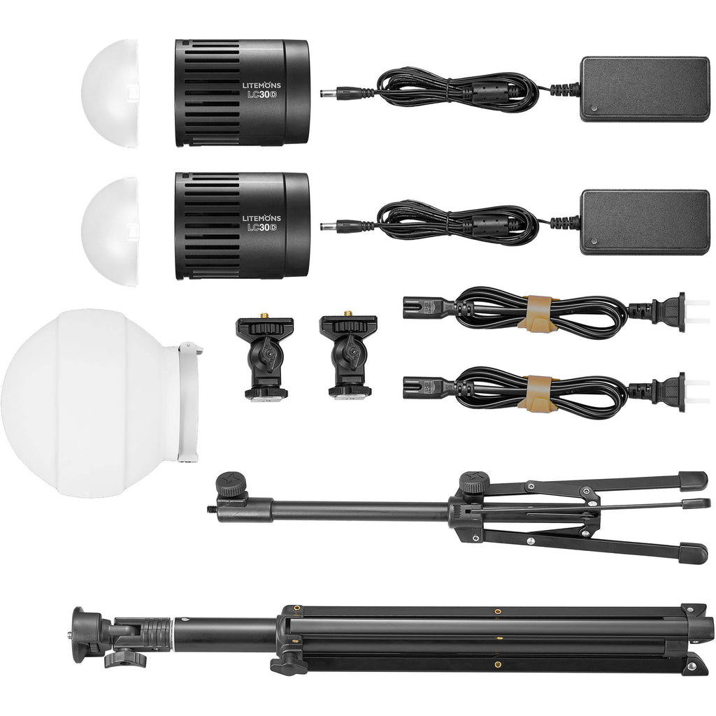 The Litemons LC30Bi Tabletop Bi-Color LED Monolight (2-Light Kit) from Godox provides everything you need to light your next production. Each light comes with a holder, AC adapter, power cable, and a diffusion dome. Two desktop stands, a tripod, two diffusers, and a carry bag are also included.