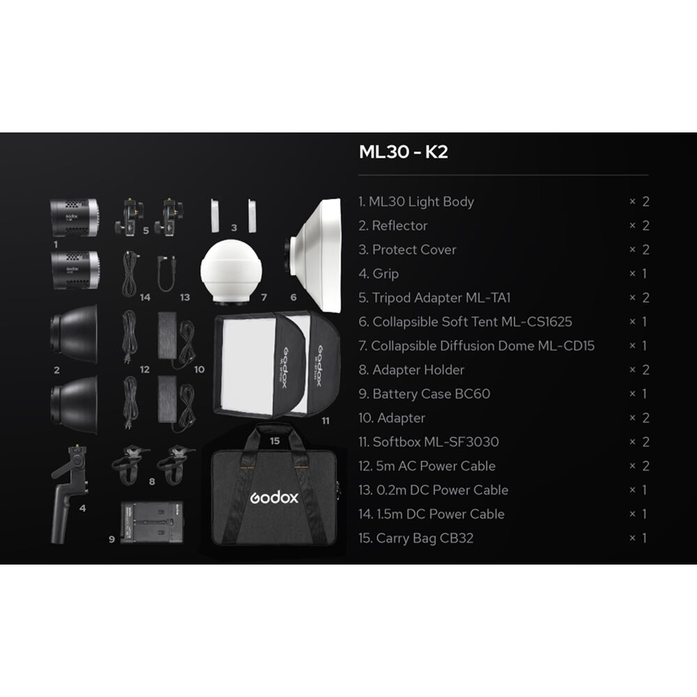 - Godox ML30 Dainty LED 2-Light Kit